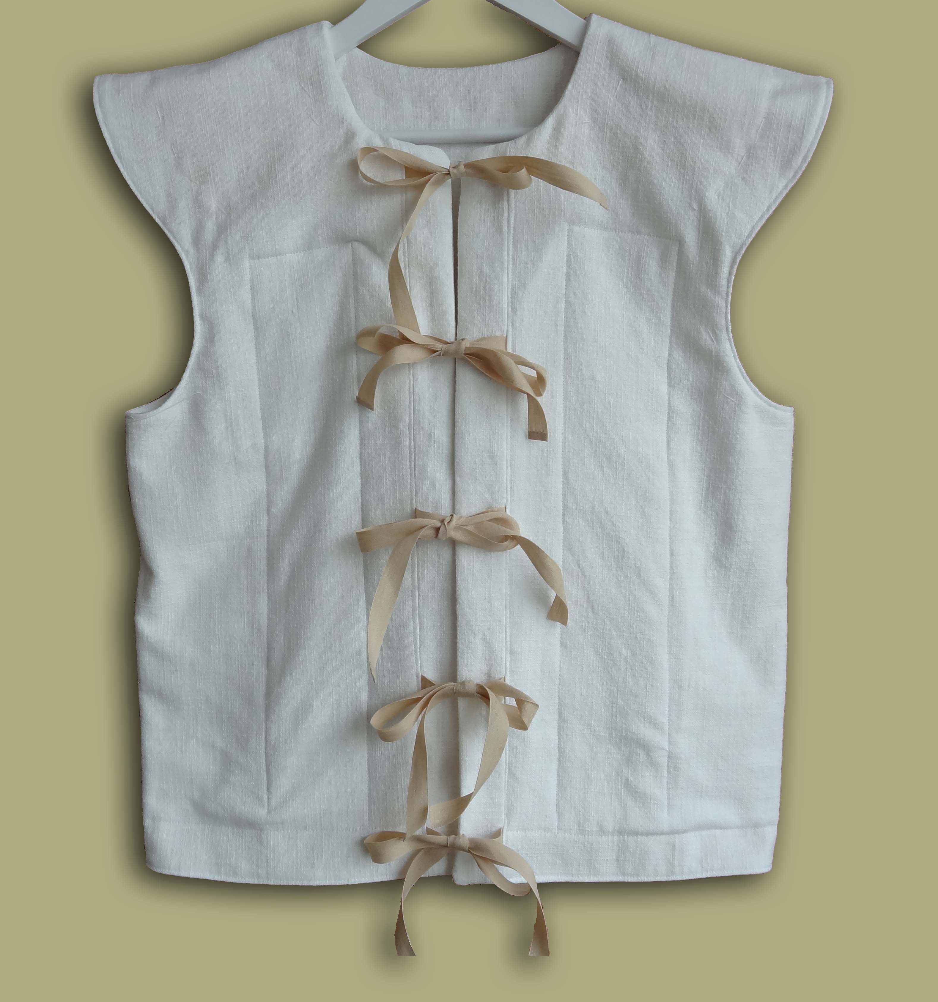 Voor deze re-enactor heb ik een rode tunica gemaakt en een linnen broek.